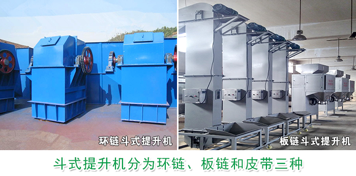 鬥(dòu)式提(tí)升機分為環鏈、板鏈和皮帶三種,根據所提升的物料選擇(zé)的料鬥設計(jì)不同,其外形設計內部配置(zhì)是不(bú)同的,環鏈式適用於輸送粉狀、小塊狀的物料,板鏈式適用於中、大塊和有磨琢性的物料,皮帶式適用於垂直輸送粉狀(zhuàng)、且磨琢性較(jiào)小的散狀物料,選擇不同種類的提升機造成價格上的差異化。