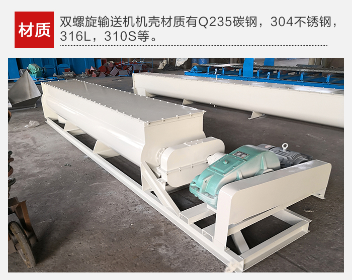 雙(shuāng)螺旋輸(shū)送機機殼材質(zhì)有Q235碳鋼,304不鏽鋼,316L,310S等(děng)等,選擇不同材質的輸送機(jī),其(qí)價格就會相應(yīng)有所變(biàn)化。在型(xíng)號等條件相同情況下,碳鋼和(hé)不鏽鋼螺旋輸送機的差價在1500-2000元(yuán)之間。