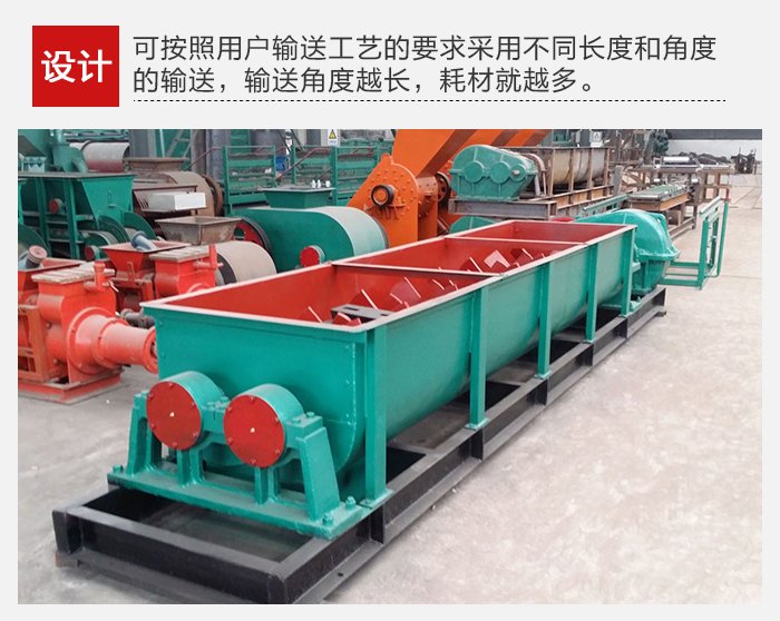 雙螺旋輸送機可以按照用戶輸送工藝的要求采用不同長度和角度的(de)輸送,輸送角度越長,耗材就越多,選擇的電機功(gōng)率及板材厚(hòu)度也是不同的。而且設備可以按照用戶輸送物料的特性設計為有軸和無軸兩種,這兩者在耗材上和加工上是不同的,所以價格也會有差異。