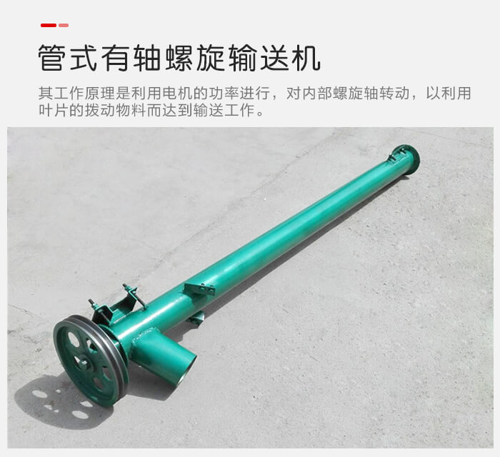 管式有軸螺旋輸(shū)送(sòng)機其,工作原理是利用電機的功率進行(háng),對內部(bù)螺旋軸轉動,以利用葉片的撥(bō)動(dòng)物(wù)料(liào)而達到輸(shū)送工作。