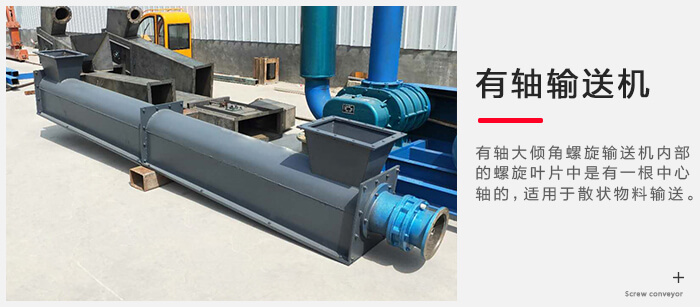 從內部構造來說,有軸大傾角螺旋輸送機內部的螺旋葉片中是有一根中(zhōng)心軸的,這(zhè)根(gēn)中心(xīn)軸可以(yǐ)幫助輸送機提升效率且防止物料堆積滑落。其適用於散狀物料(liào)的輸送。