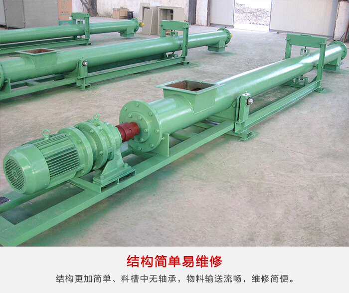 無軸螺旋輸(shū)送相(xiàng)對於有軸的螺旋輸送機其少了(le)一個軸承(chéng),所以相比之下無軸螺旋(xuán)絞龍(lóng)輸送機的結構更加簡(jiǎn)單、料槽中無軸承,物料輸送流暢,維修簡便。