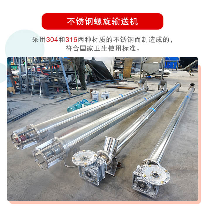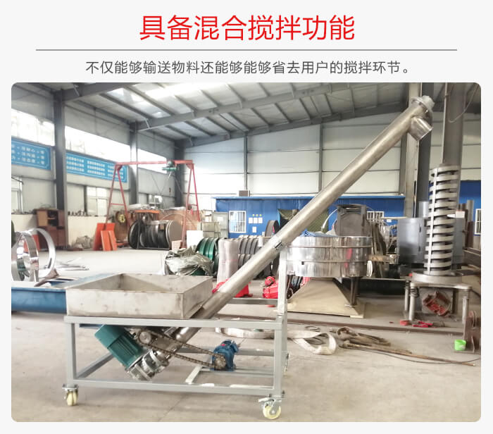 不鏽鋼螺旋輸送機(jī)不僅能(néng)夠輸送物料還能夠,攪拌物料(liào)所(suǒ)以其能夠實現物料的(de)均勻的攪拌物料,能夠省去用戶的攪拌環節,所以不鏽鋼螺旋輸(shū)送機能夠使用(yòng)到食品行業。