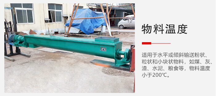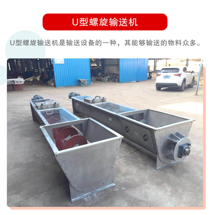 U型螺旋輸送(sòng)機適(shì)用於水平或傾斜輸送粉狀、粒狀和小塊狀物料,如煤、灰(huī)、渣、水(shuǐ)泥(ní)、糧食(shí)等,物料溫度小於200℃。