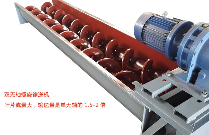 此外,想要輸送產量(liàng)大選(xuǎn)雙無軸螺(luó)旋輸送機,雙無軸設計,葉片流量大,輸送量是單(dān)無軸的1.5-2倍(bèi);