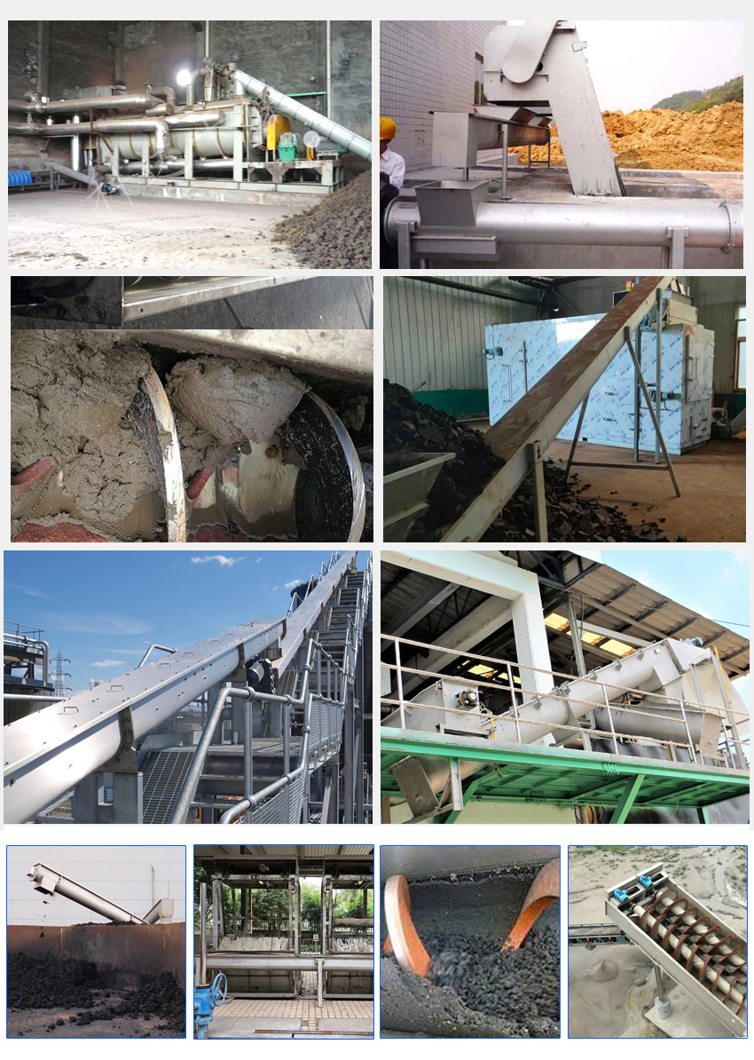 汙泥螺旋輸送機專門用於汙水處理廠汙泥脫水後輸(shū)送中、間距50mm的細格柵、泥餅等物料。