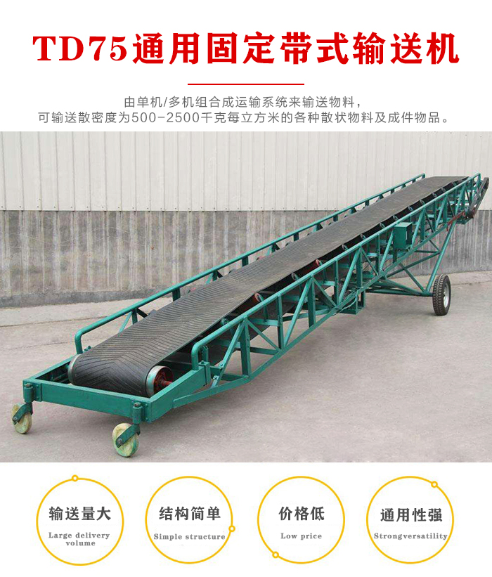 TD75通用固定帶式輸送機由於輸送(sòng)量大、結構簡(jiǎn)單、維護(hù)方便、成本低、通用性強等優點,而被廣泛地應用在(zài)冶(yě)金、礦山、煤(méi)炭、港口(kǒu)、交通、水電、化工(gōng)等部門進行裝車、裝船、轉載或堆積各(gè)種常溫狀態的鬆散密度為500~2500kg/m3各種散狀物料或成(chéng)件物品。