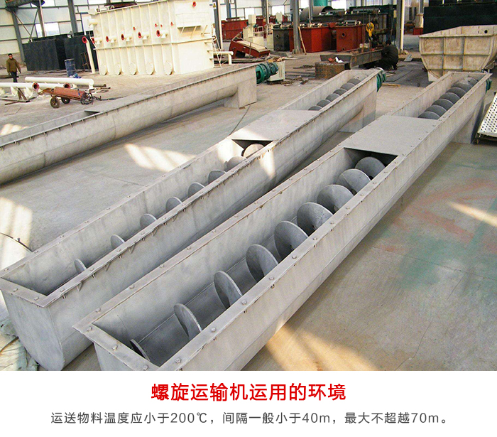 螺旋運輸機運用的環境(jìng)溫度通常為-20~50℃;其中,水平型螺旋運輸機,其(qí)運送物料溫(wēn)度應小於(yú)200℃;運(yùn)送機傾角β一般應小於20°;運(yùn)送間隔一般小(xiǎo)於40m,不超越(yuè)70m。筆直型螺旋(xuán)運輸機,其運送物料溫度一般不大於80℃,筆(bǐ)直提高高度不超(chāo)越8m。 鑒於螺旋運輸機的應用規模及功用特色,用戶在選型時,應根據運用環境及運送物料狀況充分考慮、顧全大(dà)局、合理選定,以避免不必要的麻(má)煩(fán)和丟(diū)失。