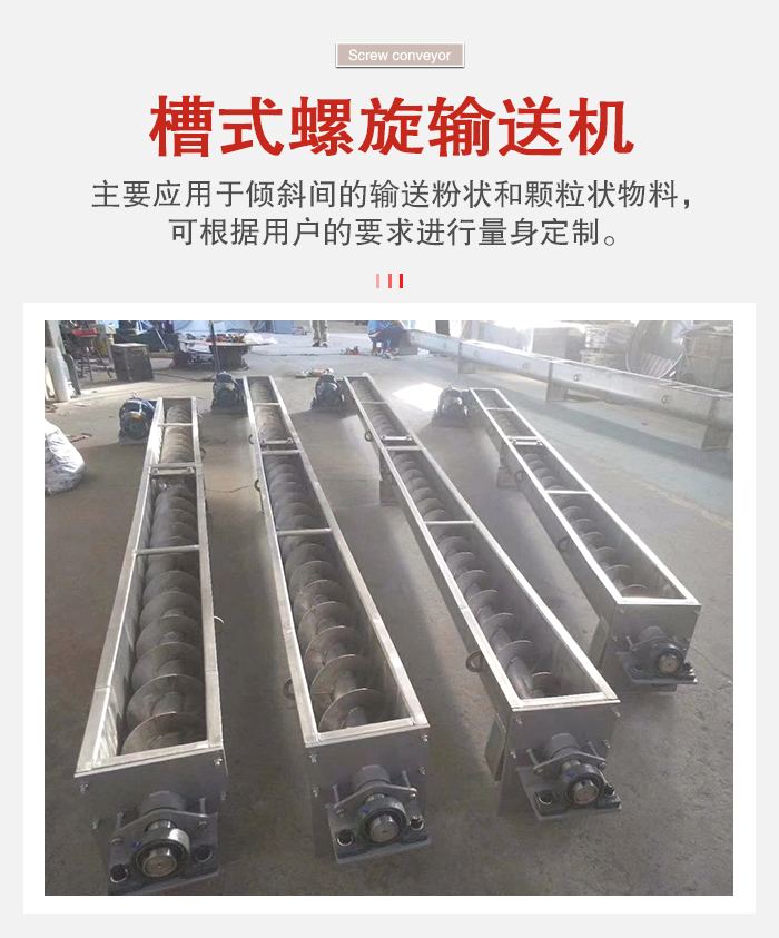 2、槽式螺旋(xuán)輸送機適應性強、安裝(zhuāng)維(wéi)修方便、壽命長。