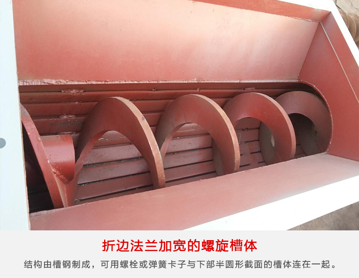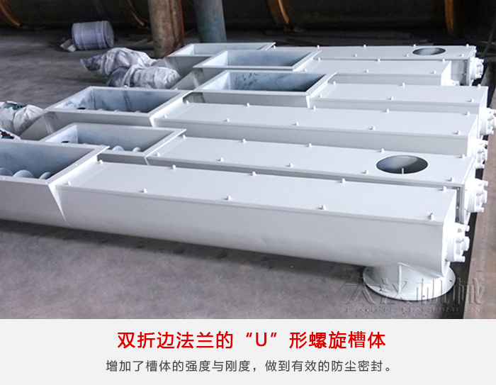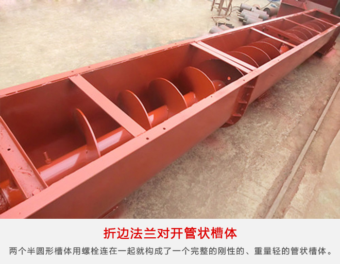 煤粉螺旋輸送機這種形式的(de)槽體類似於角(jiǎo)鐵法蘭槽體,但法蘭是由半圓形槽體的同(tóng)一塊鋼板橋邊(biān)加(jiā)工製成,兩個半圓形槽體用螺栓連在一起就構(gòu)成了一個完整的剛性的、重量(liàng)輕的管狀槽體。