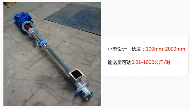1、小型(xíng)號設計,長度100mm-2000mm,輸送量可達0.01-1000公斤/時;