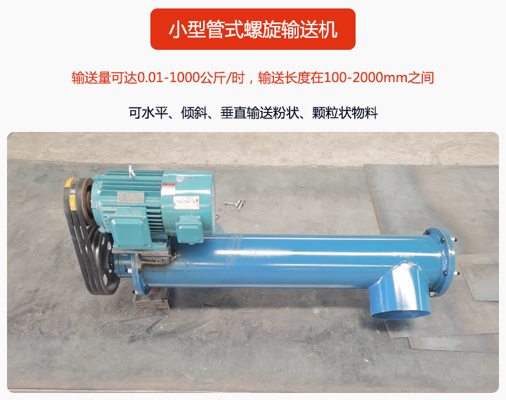 小型管式螺旋輸送機適用於建材、化(huà)工、電力、冶金、煤炭、糧食等行業,適用於水平或傾斜輸送(sòng)粉狀、粒狀和小塊狀物料,如煤、灰、渣、水泥、糧食等。