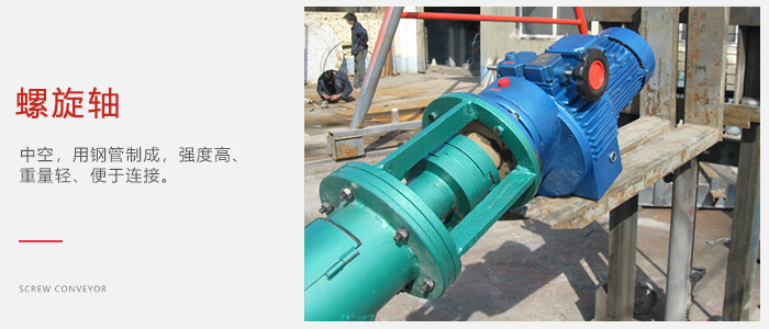 螺旋軸:中空,用(yòng)鋼管製成,強(qiáng)度高、重(chóng)量(liàng)輕(qīng)、便於連接。在軸與軸的(de)連接處和安裝軸承處使用一小段實心軸。在連接(jiē)處將實心軸伸入空心軸內用高強度的螺栓按相互垂直方向對穿空心軸(zhóu)與實心軸來固(gù)定連接螺旋軸。