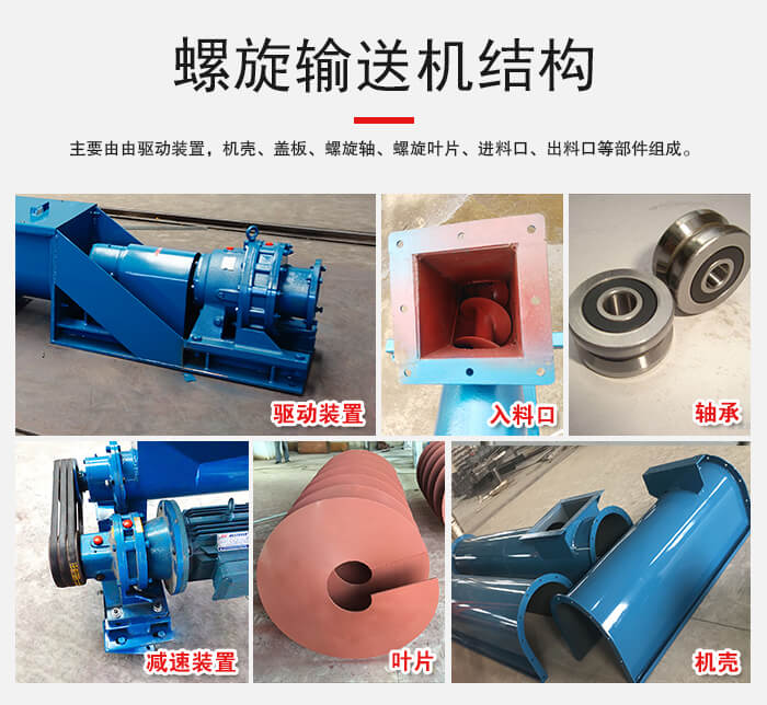 主(zhǔ)要由由驅動裝置,機殼(ké)、蓋板、螺旋軸、螺旋葉片、進料口、出料口等部件組成(chéng)。