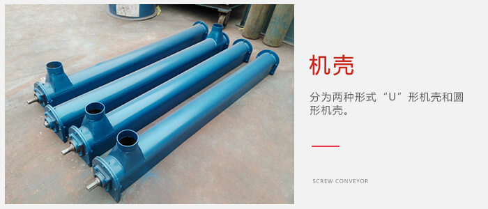 機殼:分(fèn)為兩(liǎng)種形(xíng)式“U”形機殼和圓形機殼,圓(yuán)形機殼主要是用作密封(fēng)設備進料,圓形機殼的絞龍又叫密封絞龍(lóng)。