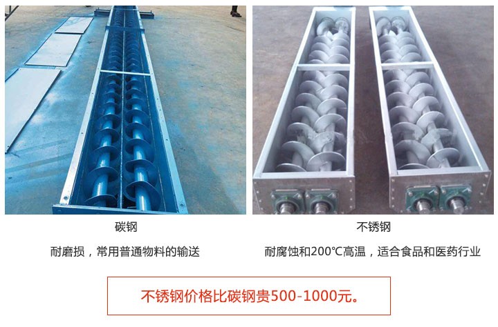 雙螺旋輸送機(jī)材質(zhì)分碳鋼和不鏽(xiù)鋼;
