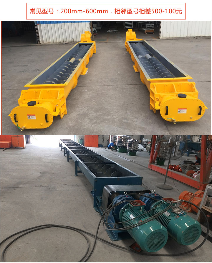 雙螺旋輸送機常見有(yǒu)200mm-600mm等6種型號規(guī)格;型號越大輸(shū)送量越高,可達458立(lì)方(fāng)米/小時,用(yòng)戶可根據實際情(qíng)況選擇適合的型號,此外也可支持特(tè)殊型號定製。