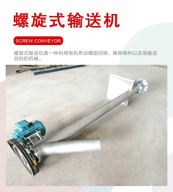 簡(jiǎn)介:螺旋式輸送機是一種利用電機帶動螺旋回(huí)轉(zhuǎn),推移物料以實現輸送(sòng)目的的機械。
