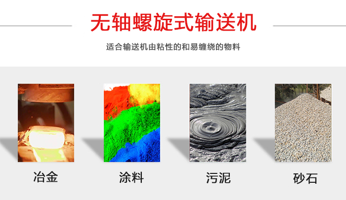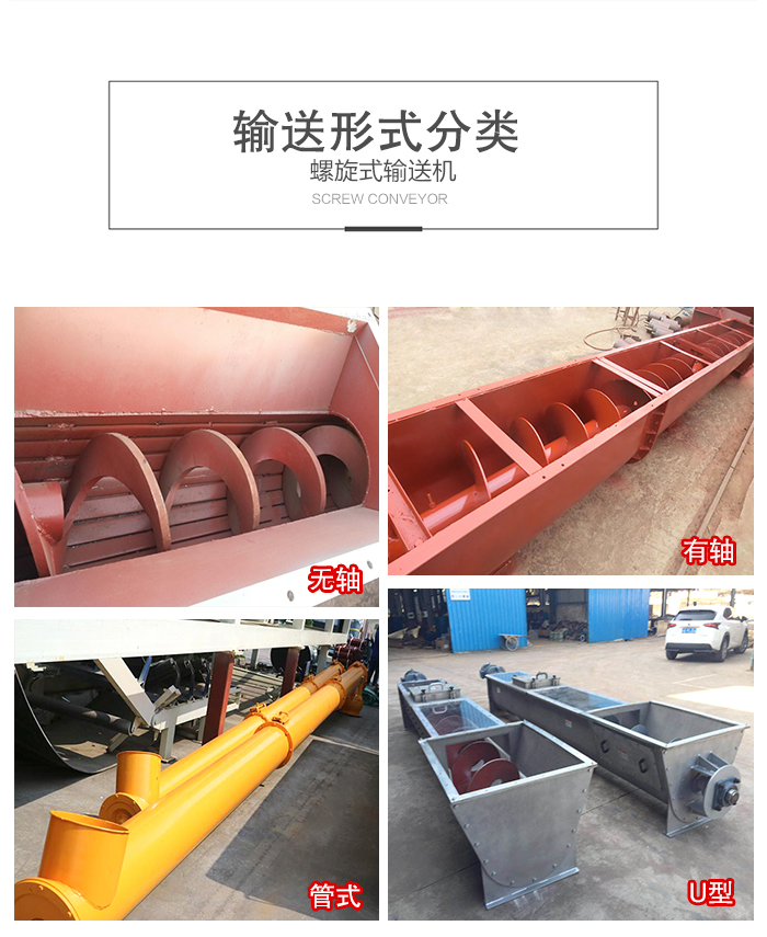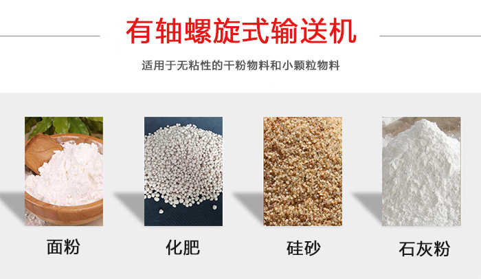 有軸螺旋(xuán)式輸(shū)送機適(shì)用於無粘性的幹(gàn)粉物料和小顆粒物料.(例如:水泥、粉煤灰、石灰、糧等)而無軸螺旋式輸送機適合(hé)輸送(sòng)機由(yóu)粘性的和易纏繞的物料。(例如:汙泥、生物質、垃圾等)
