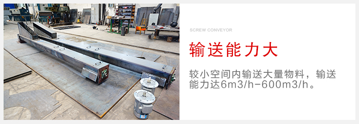(1)螺旋式輸送機輸送能力大,高效(xiào)的輸送機允許在較小空間內輸送大量物料,輸送能力達6m3/h--600m3/h。