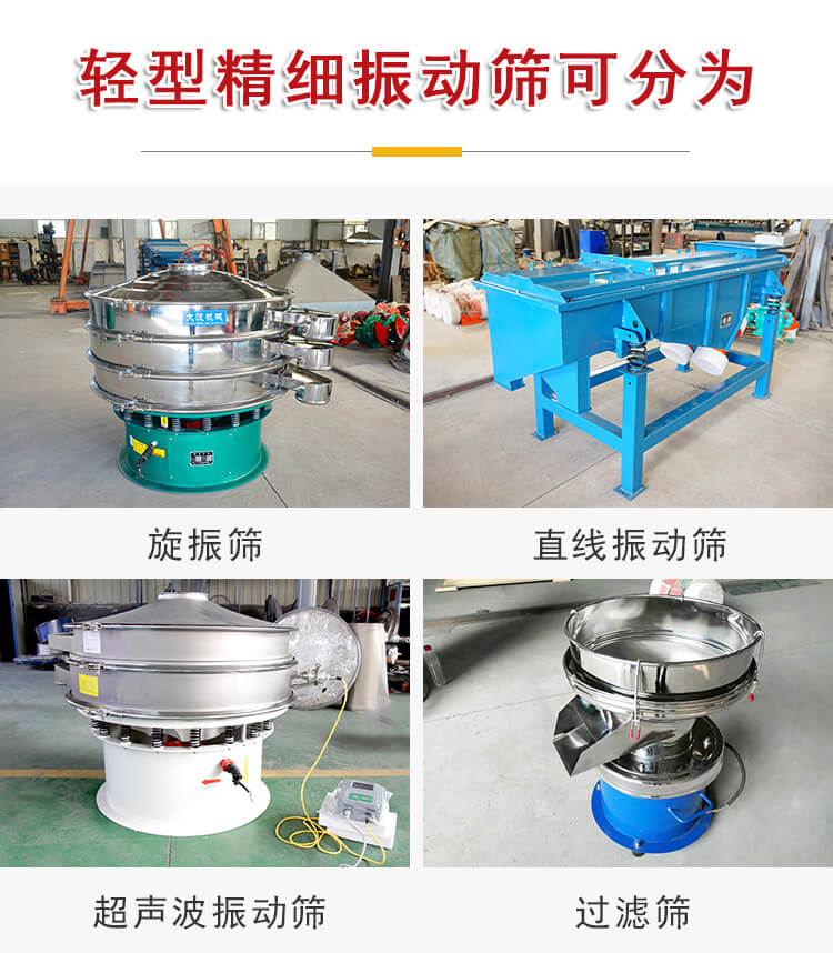 旋振篩,直線(xiàn)篩,直排篩,超聲波振動篩,過濾篩等可參考振動篩係(xì)列。